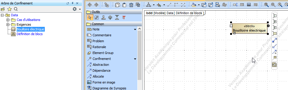 Sélectionner dans l'arbre de confinement le pot et glisser le près de l'exigence 3
