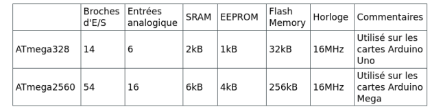 Comparatif des caractéristiques principales des cartes Arduino Uno et Arduino Mega :
