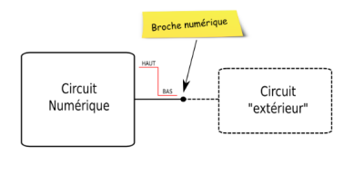 Rappel : Une broche numérique ne peut avoir que 2 états : HAUT ou BAS. Une broche numérique, une broche métallique dans le cas d'un circuit intégré ou d'une carte électronique.