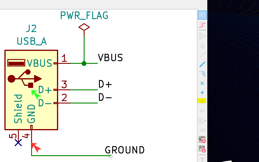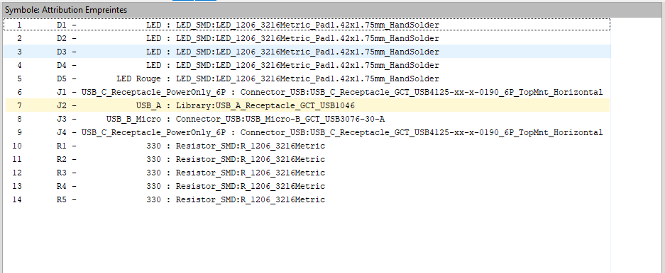 Ajouter Le texte GND D+, D- VBUS en sérigraphie F.SilkScreen.