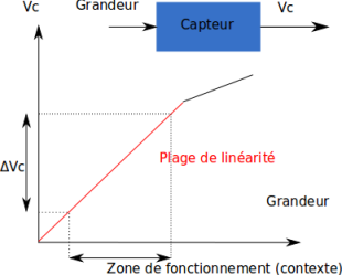 Un capteur fournit une tension qui varie lorsque la grandeur varie. Cette relation peut être linéaire ou non. Dans certains cas la relation peut être opposée : lorsque la grandeur physique augmente la tension diminue. Un capteur ne peut être directement relié au CAN. En effet il est rare que la plage d'utilisation du CAN corresponde à l'étendue des valeurs de Vc. C'est pourquoi il est toujours suivi d'un étage dit de