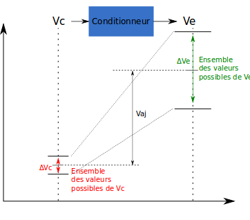 Des opérations d'amplification et de décalage du signal seront nécessaires pour permettre au conditionneur d'ajuster la plage de variation de la tension Vc issue du capteur à la plage de fonctionnement du CAN.