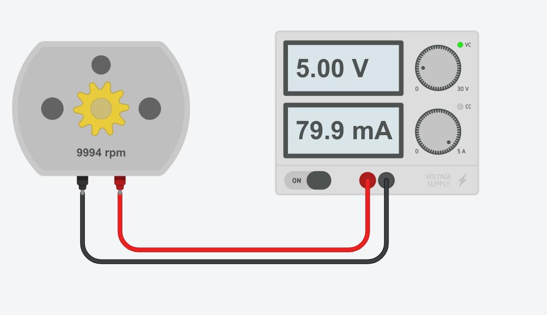 Pour différentes valeurs de la tension aux bornes du moteur, relever la vitesse en tour par minute (rpm en anglais) en remplissant le tableau suivant :