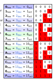 En mathématique, il est possible de compter de différentes façons. Il existe la base décimale, qui est la base la plus communément répandue, celle que nous utilisons tous les jours pour compter. Il est aussi possible de compter en base 2 (binaire), en base 8 (octal) et en base 16 (hexadécimal). D'autres bases existent, en fait une infinité, mais les bases précédemment citées sont celles qui sont le plus souvent utilisées en électronique et en informatique.