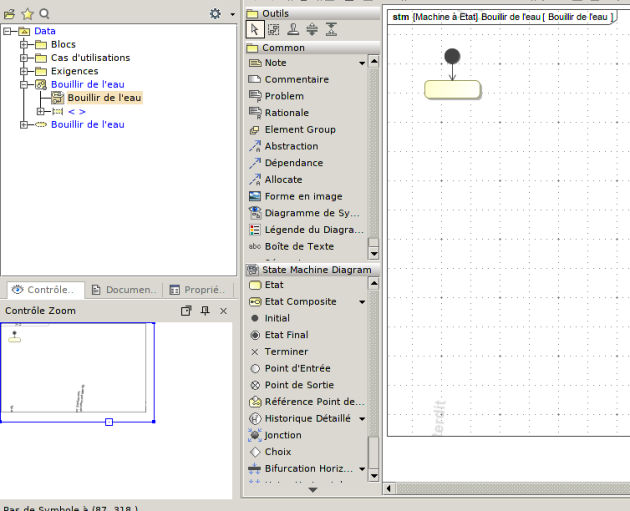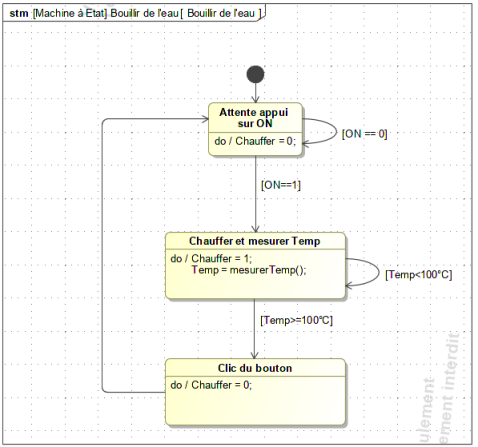 La création du diagramme d'états_transitions décrit ce qui se passe dans le système de contrôle par le biais des différentes entrées/sorties de celui-ci.