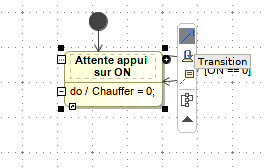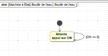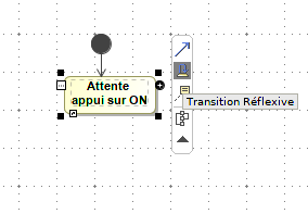 Dans la barre d'outils de cet état, faire apparaître une transition réflexive et placer-la comme ci-dessous :