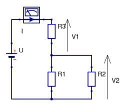 Dans le montage ci-contre, l'intensité du courant I mesuré par l' ampèremètre est de 10mA. La résistance R3 et de 1kΩ. On a également R1 = R2 = 2kΩ.