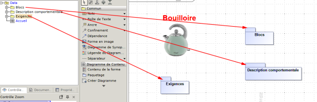 Ajouter du texte et une image de bouilloire puis Cliquer-glisser les paquets :
