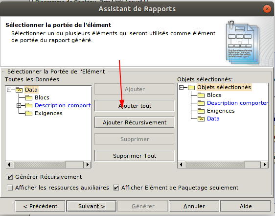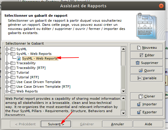 Lancer Assistant de rapport : dans le Menu Outils Sélectionner SyML Web Reports :