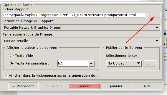 Indiquer un chemin pour le fichier html et cliquer sur générer :