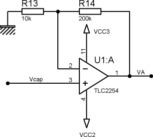 Le schéma structurel, disponible ici, montre différents étages à base d'AOP. L'étude théorique portera donc sur ces différents étages. Les tensions d'alimentation sont telles que : VCC = 5V, VCC2 = 8V, VCC3 = -8V