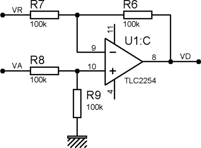 Déterminer l'expression littérale de VD en fonction de VA et VR et des éléments du montage sans simplification.