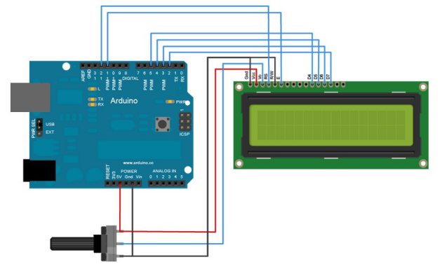 // include the library code:// initialize the library by associating any needed LCD interface pin// with the arduino pin number it is connected toconst int rs = 12, en = 11, d4 = 5, d5 = 4, d6 = 3, d7 = 2;
