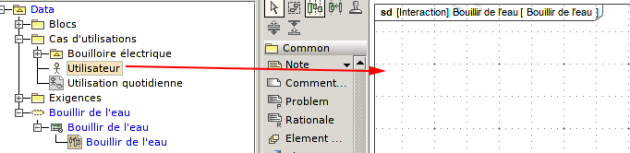Pour ce diagramme de séquence on doit faire apparître l'utilisateur. Il faut le glisser dans le digramme depuis l'arborescence :