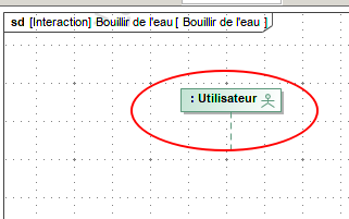 Une instance apparaît alors avec sa ligne de vie et le stéréotype associé (le « petit bonhomme » :