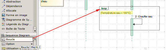 La bouilloire chauffe l'eau jusqu'à la porter à ébullition : il nous faut une boucle, un fragment combiné de type loop: