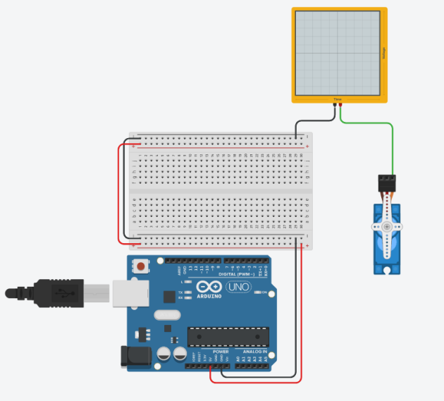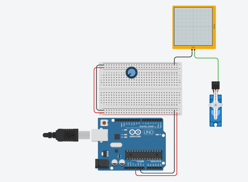 Sous TinkerCAD piloter votre servomoteur à l'aide d'un potentiomètre comme dans la deuxième partie de la vidéo
