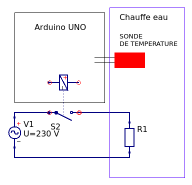 On souhaite remplacer le thermostat mécanique par une carte Arduino pilotant un relais en fonction de la température :