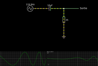 Simulation Circuit JS Circuits -> Filtres passifs -> Filtre passe-haut (RC)
