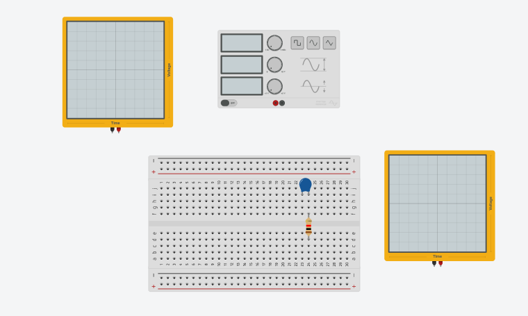 Réaliser le circuit en réel (R = 1kΩ) et C = 100 nF en branchant le GBF et l'oscilloscope.