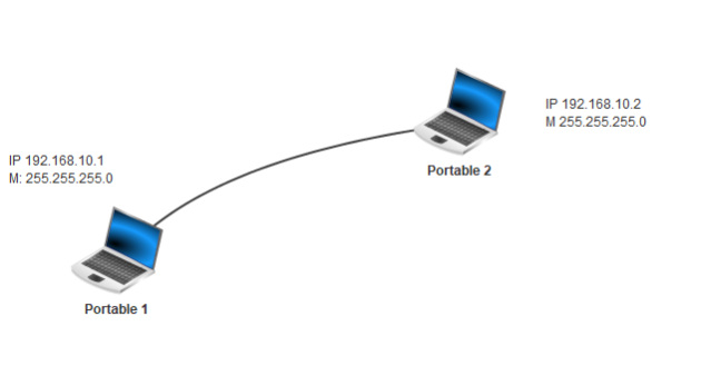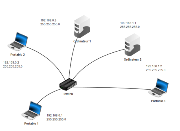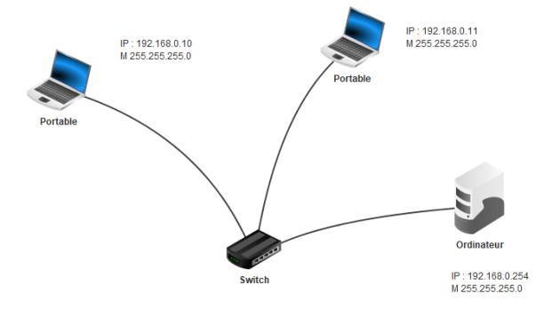 Vérifier à l'aide de la commande ping que le portable à droite de la figure peut bien communiquer avec l'ordinateur.