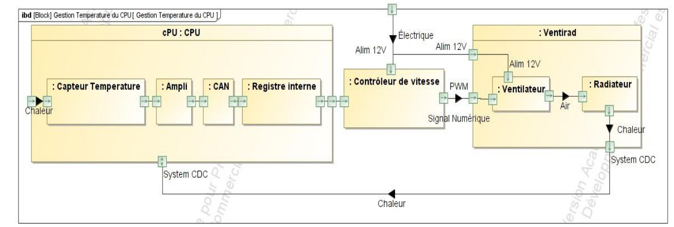 Pour piloter le moteur du ventilateur le CPU envoie une commande au contrôleur de vitesse qui assure l'alimentation électrique : 12 V continu et la variation de la vitesse en agissant sur le rapport cyclique d'un signal carré (PWM : Pulse Width Modulation).